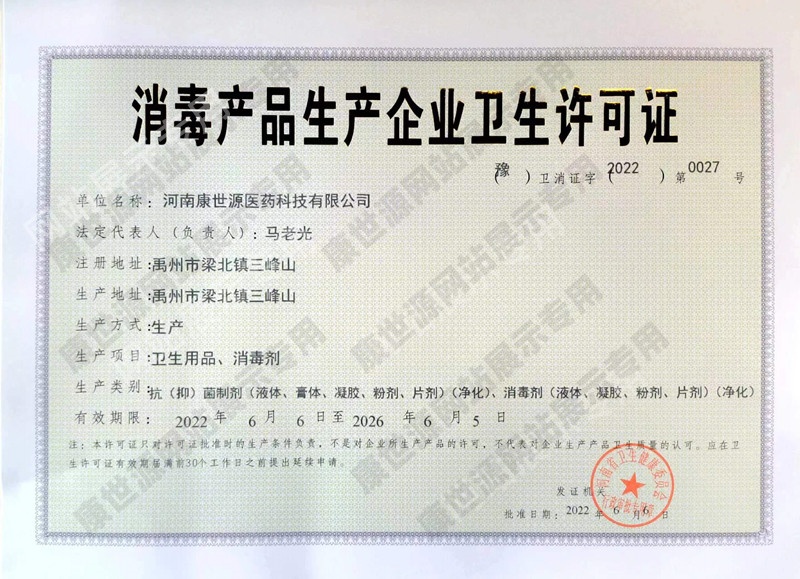 消毒產(chǎn)品企業(yè)生產(chǎn)衛(wèi)生許可證