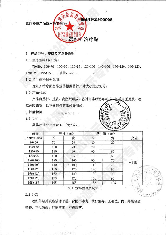 遠(yuǎn)紅外治療貼注冊(cè)證